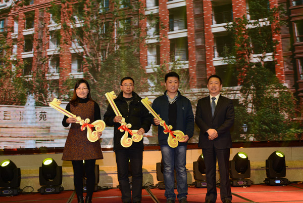 為三位高級人才代表頒發(fā)紅豆新居
